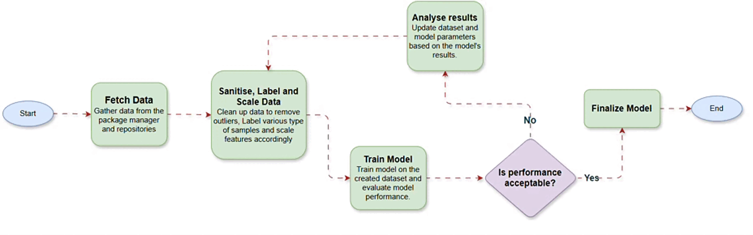 In the phase one, the primary challenge was gathering high-quality data to train the model. To address this, we sourced data from the PyPI repository API and corresponding repositories. Following data collection, we identified 12 key features including several synthetic ones to enhance the model’s interpretability.