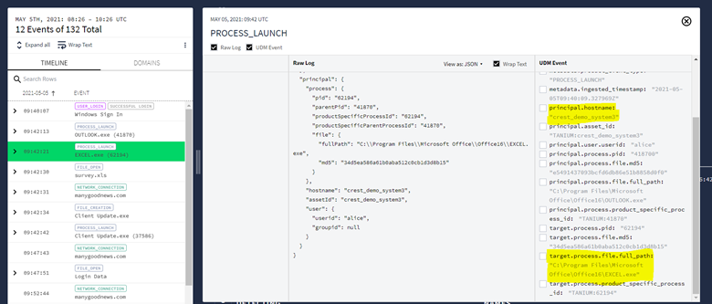 UDM events are a combination of key value pairs in the format JSON. Direct UDM events can also be prepared and ingested to the Chronicle platform. For reference on how to prepare UDM events, what are the types of UDM events and examples can follow the link. The following example illustrates how you would format a PROCESS_LAUNCH event using the Chronicle UDM syntax: