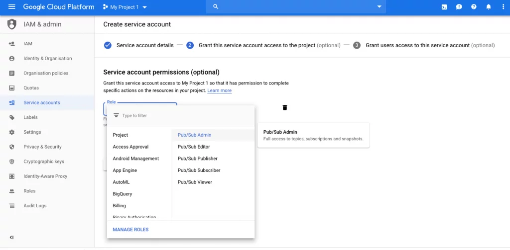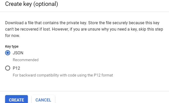 Now it is time to setup up account for google cloud with service account and valid keys associated with it.