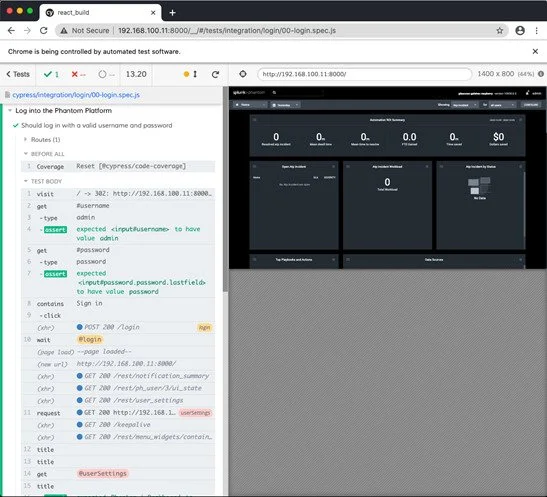 One of Cypress’s coolest features is that it takes snapshots at each step and you can hover your mouse over each stage to see what happened. These snapshots are not just images. When you select a snapshot in your test history, the page itself reverts to its previous dom tree. This means you can interact with the page and more easily find out exactly what went wrong. In addition to snapshots, Cypress includes a video feature which optionally stores a video of your tests being carried out. This feature is especially useful when included in your CI/CD pipeline.