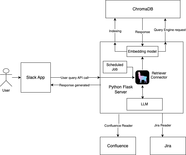 Backend with Flask: Ensured efficient processing of user queries with integration into Confluence and Jira.